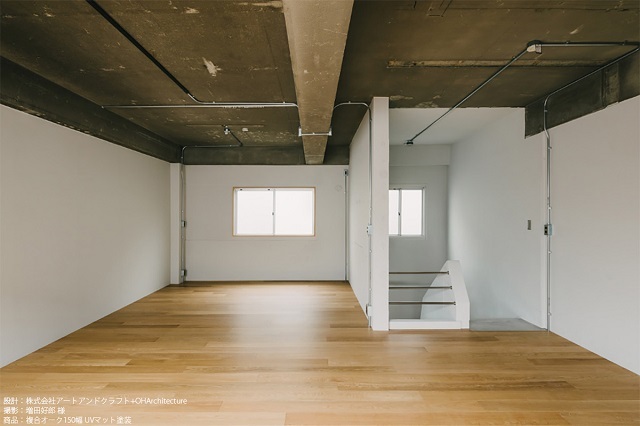 オーク(ナラ・楢)の美しい木目と色の濃淡や節など、木材本来のあたたかみを感じられるフローリングです。全体的にナチュラルな色合いである一方で、オーク材特有の虎斑が部分的に見られ、無垢材の様な質感を楽しむことができます。継ぎ目のないきれい目な一枚もので、広い空間にも最適の商品です。