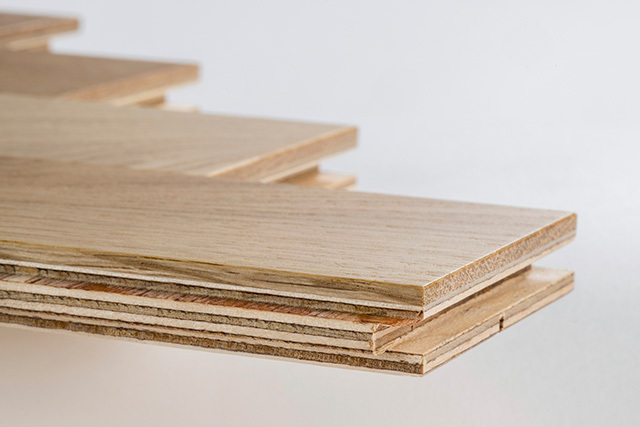 人気のヘリンボーンフローリングをより施工しやすく、4ピースを1枚に組んだパーケット仕様により、通常のヘリンボーン施工に比べて施工効率の向上を目指した複合フローリングです。
